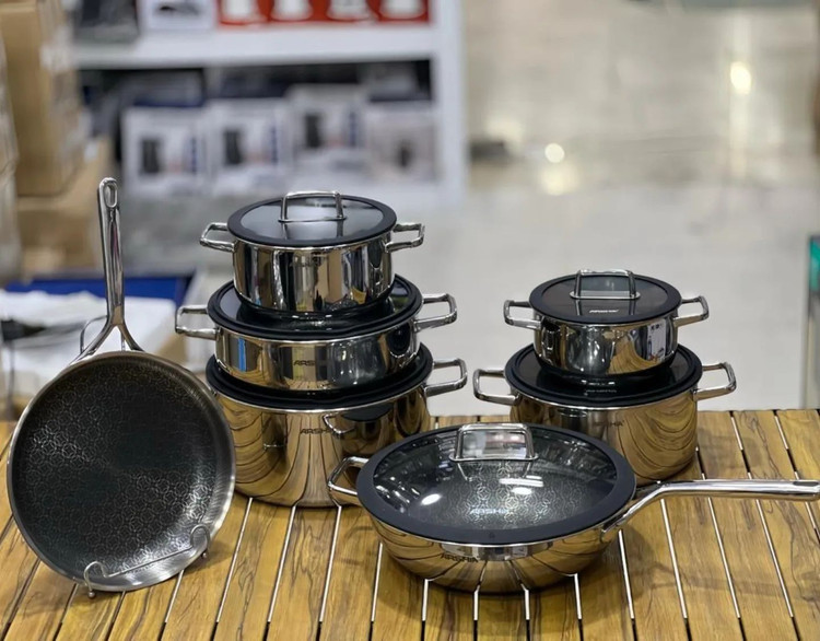 سرویس قابلمه استیل کف لیزری عرشیا 13تیکه مدل:3343 سه لایه ، استیل ضد زنگ 18/10 قابلمه در سایز 28242018 ماهی تابه دو دسته سایز28 ماهی تابه ووک سایز30 ماهی تابه تک دسته سایز 26 پوشش نچسب بادوام ماندگار دستگیره محکم استیل ضد زنگ قابلیت شستشو در ماشین ظرفشویی درب شیشه ای شفاف با لبه سلیکونی . . . . . . . . . . .